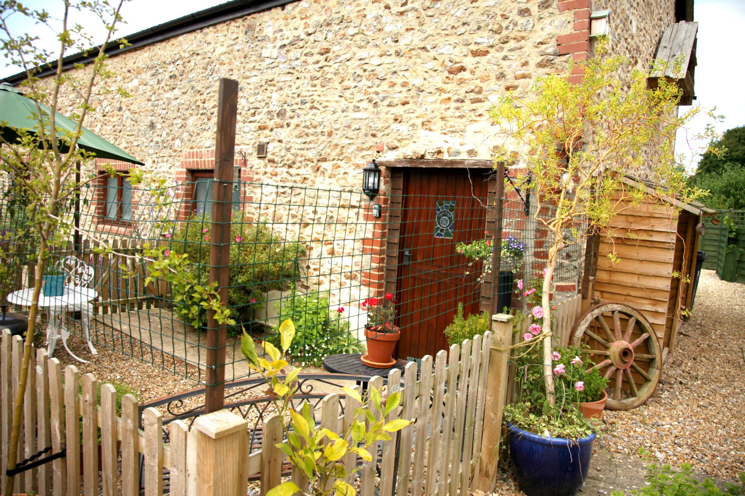 We spent a beautiful week at the Bull Pen. We find the rooms spacious, comfortable and well-equipped. We made good use of the herb garden, cooking supper. In the morning, we enjoyed watching the riders from the nearby stables go past the window. The grounds are extensive, great for a stroll, and there are so many walks just on the doorstep. We walked from there down to the river, and watched the sand-martins. The bench outside is a real sun trap in the late afternoon..perfect for a quiet spot to read. At the moment the cherry blossom is out…so hopefully a good crop later in the year!